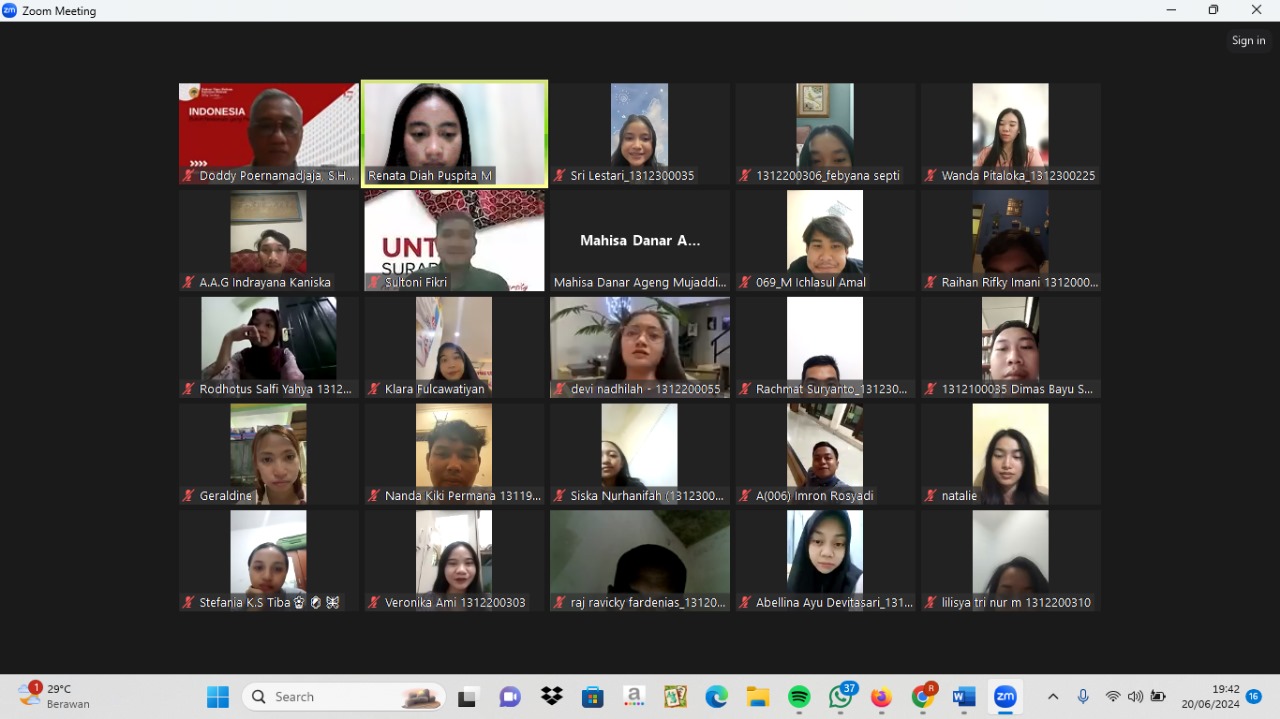 Ujian Skripsi S1 FH Untag Surabaya pada 25 Juni 2024 atas nama Thaliah Zalfa...
