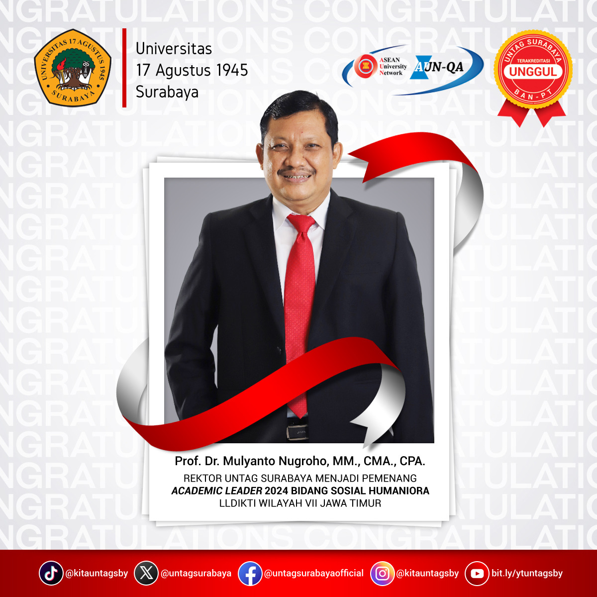 Prestasi membanggakan di raih oleh Rektor Untag Surabaya. Untag Surabaya selalu...