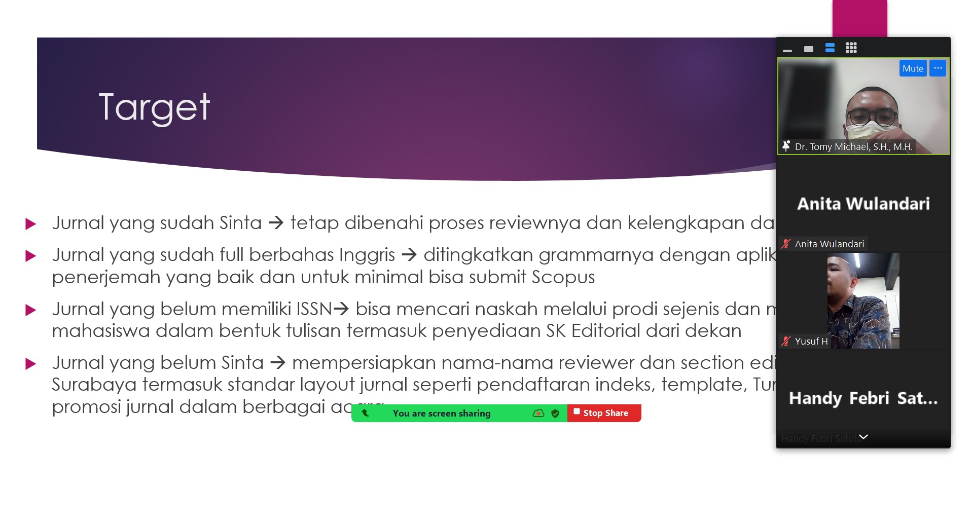 Kepala Lab. Hukum Untag Surabaya Dr. Evi Kongres Memberikan Paparan Artikel Ilmiah dalam Workshop