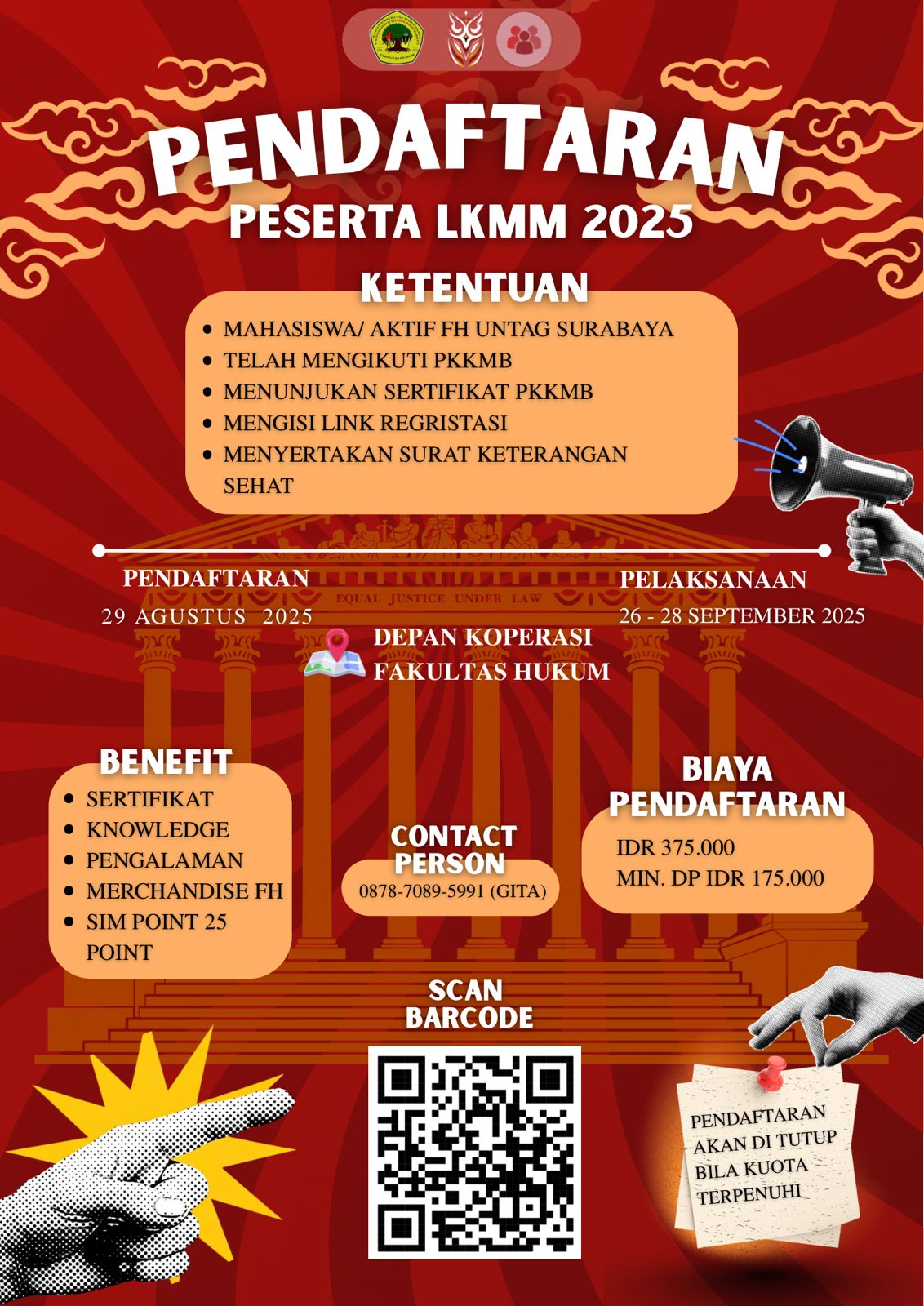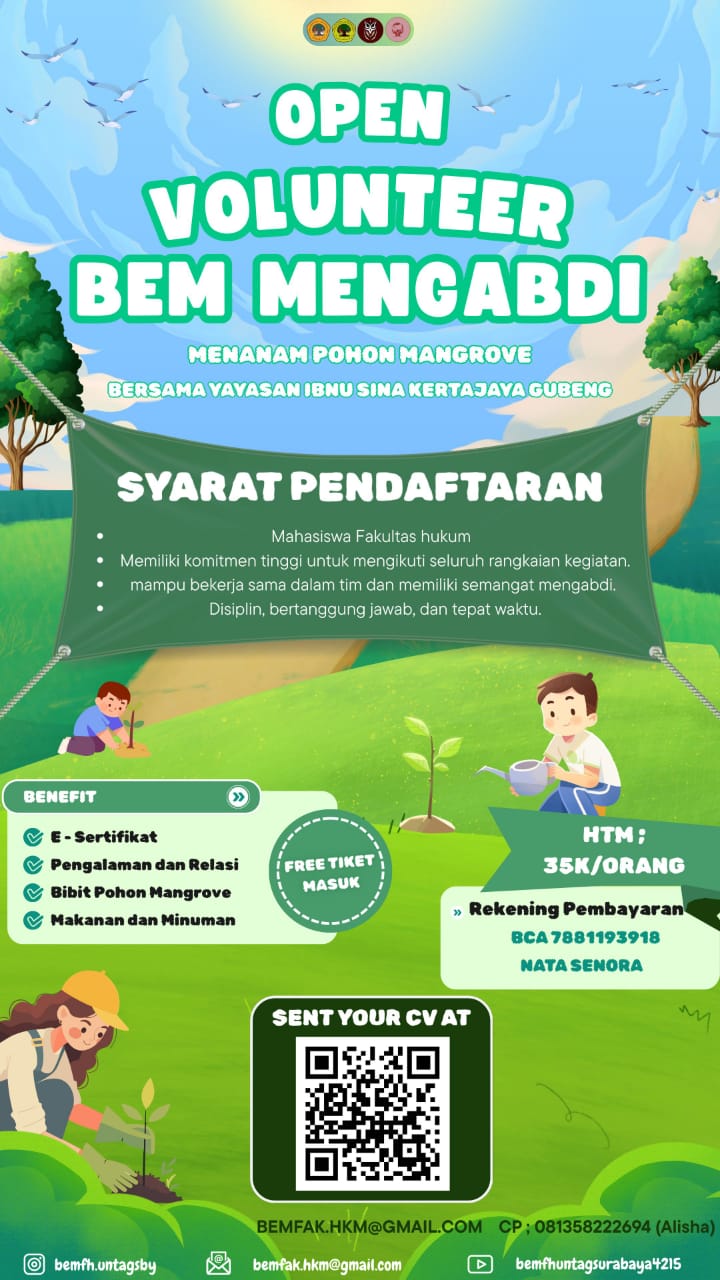 OPEN REGISTRATION!!! Halo mahasiswa/i Fakultas Hukum Untag Surabaya, BEM Fakultas...