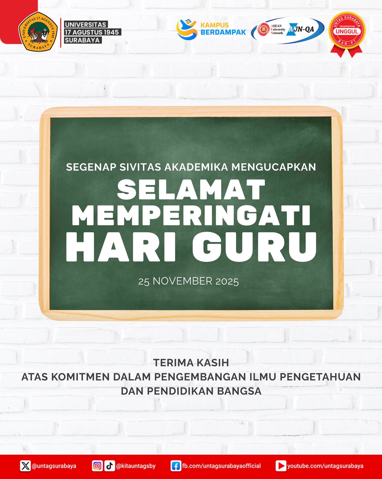 Segenap civitas akademika Untag Surabaya menyampaikan Selamat Hari Guru...